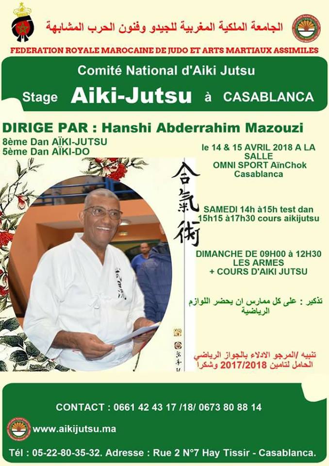 Prochain Stage : Stage national aikijutsu à casablanca le 04/06/2023 diriger par maitre mazouzi abderahim 8 Dan Aikijutsu 5 Dan Aikido.